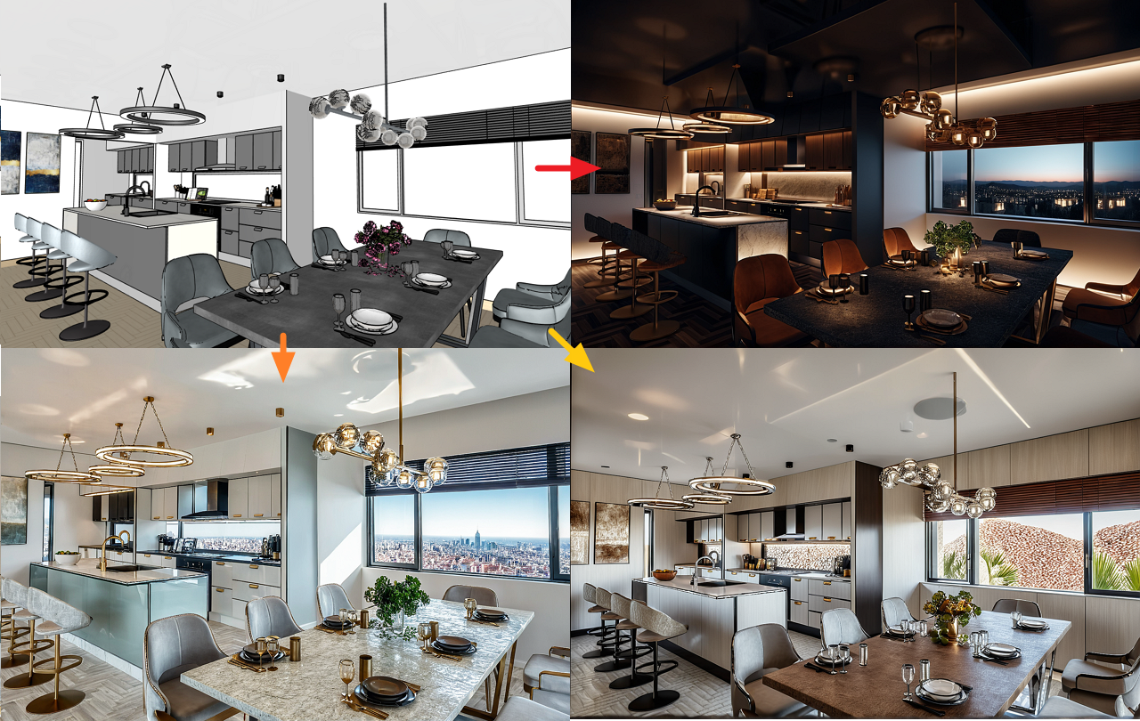 Crie renderizações impressionantes de interiores para qualquer ambiente em segundos. Assim, transforme fotos ou esboços em visualizações profissionais e, dessa forma, acelere seu processo criativo.