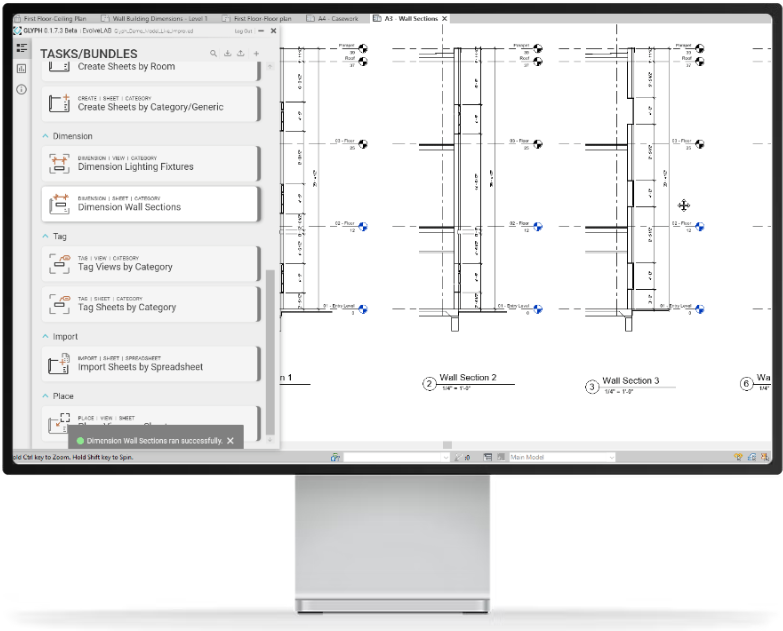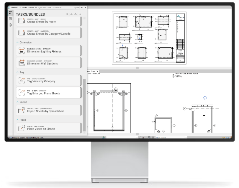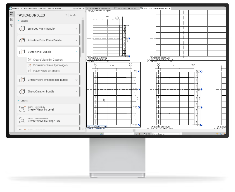 O Glyph é um plugin para o Autodesk Revit® que automatiza tarefas de documentação, tornando processos repetitivos muito mais rápidos e precisos. Dessa forma, ele permite criar vistas e folhas, adicionar dimensões, aplicar marcações, organizar pacotes de folhas e muito mais — tudo de maneira padronizada e personalizável. Além disso, o Glyph conta com o Glyph Copilot, um assistente baseado em IA que eleva a automação a outro nível e, consequentemente, torna o trabalho mais inteligente e eficiente.